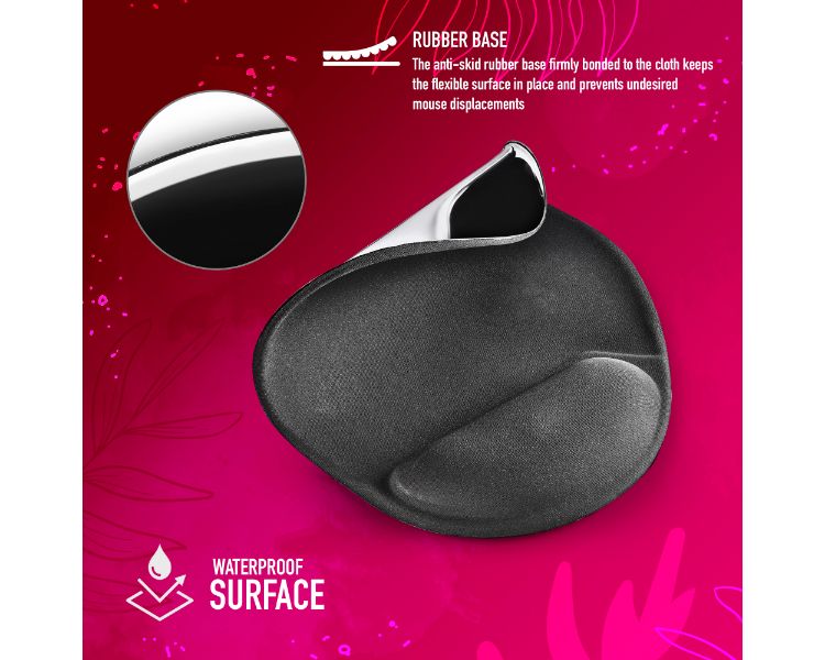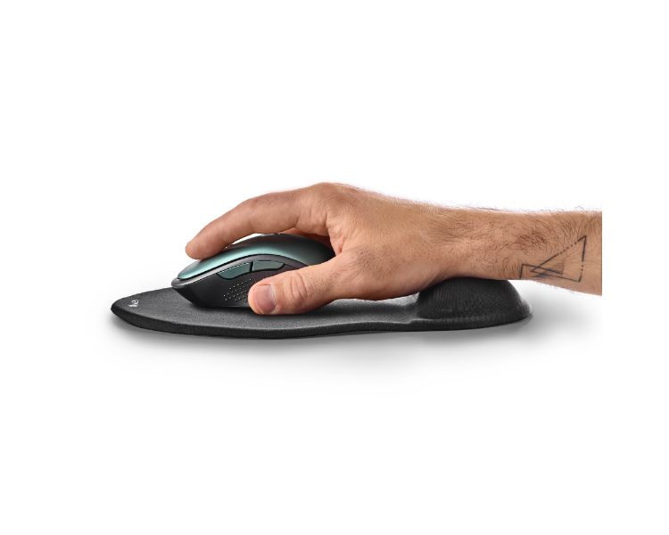 Almohadilla de ratón ergonómica rellena de gel en la zona de apoyo de la muñeca para un máximo confort.