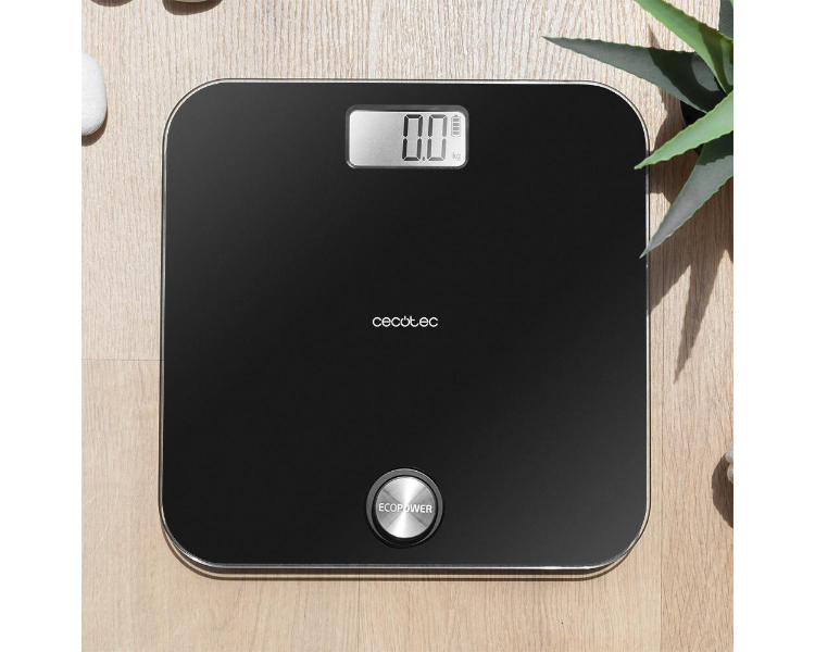 - EcoPower. Funciona sin pilas gracias al pulsador EcoPower. El pulsador crea energía cinética, que se transforma en energía eléctrica de forma simple y automática, consiguiendo una báscula ecológica y más respetuosa con el medioambiente.