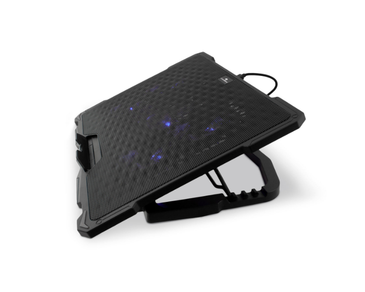 Hasta 17.3"/ Ajustable en 4 alturas/ Velocidad regulable/ 2xUSB/ Iluminación LED azul