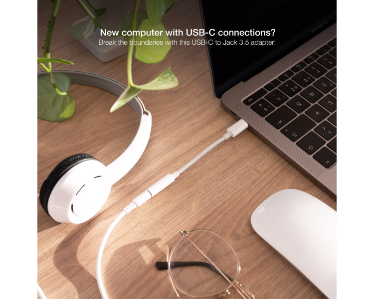 CABLE ADAPTADOR AUDIO USB-C/M A JACK 3.5/H 11CM BLANCO NANOCABLE
