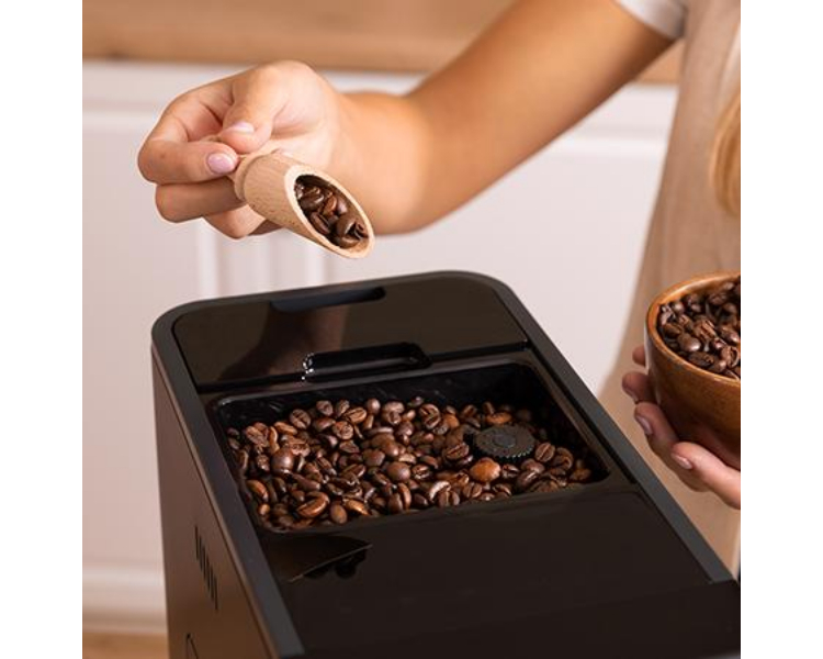 - El depósito de 150 gr de café en grano hermético garantiza el mantenimiento del aroma original. Dispone de un molinillo cónico integrado con niveles de molido.