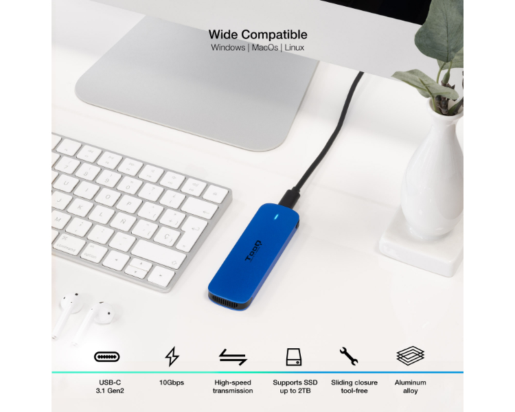 CAJA EXTERNA SSD M.2 NVMe AZUL TOOQ