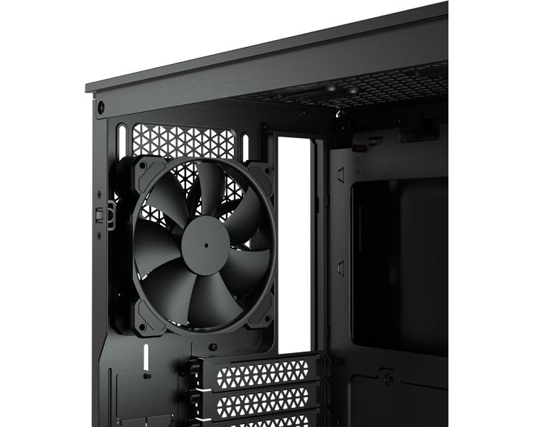 El espacioso interior puede alojar un máximo de 6 ventiladores de 120 mm o 4 de 140 mm, así como varios radiadores, como uno de 360 mm en la parte frontal y uno de 280 mm en la parte superior.