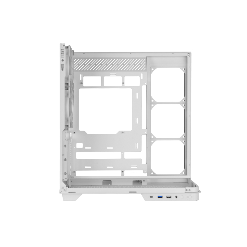 Bahias: Internas: 1x 3'5, 3x 2'5 Color Del Producto: Blanco Conectores: USB 2.0 x 1, USB 3.0 x 1, USB-C x 1 Audio In/Out F.A.: No Formato: ATX Formato F.A.: ATX Medidas: 420 x 289 x 460 mm Otros: 2 Ventiladores ARGB Incluidos Potencia F.A.: Sin fuente