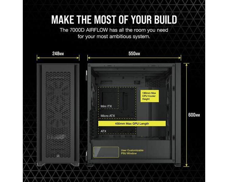 El espacioso interior, el enorme flujo de aire y el diseño inteligente del 7000D AIRFLOW abre un mundo de posibilidades para dar forma a montajes creativos e inolvidables.