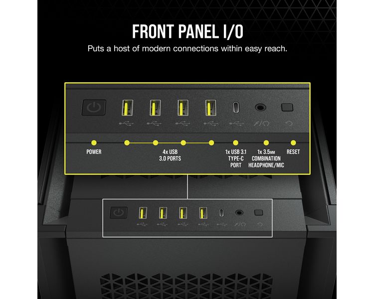 Case Front IO (4x) USB 3.0, (1x) USB 3.1 Type C, (1x) Audio in/out