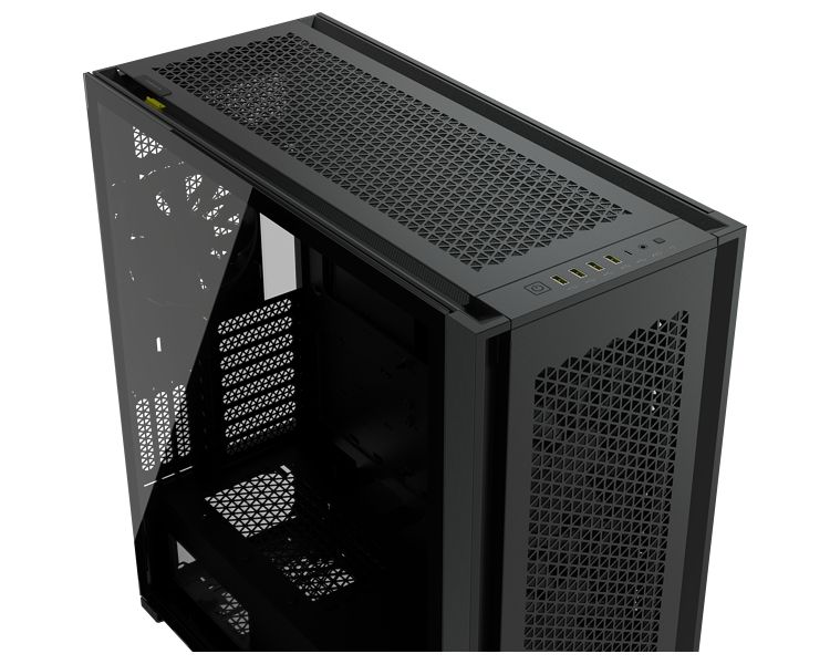Equipado con tres ventiladores CORSAIR AirGuide de 140 mm (incluidos) con aspas antirremolinos que concentran el flujo de aire.