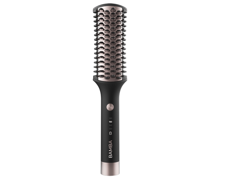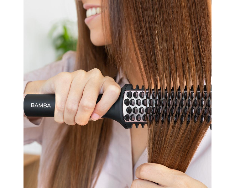 - Alisa u ondula suavemente las puntas gracias a la forma redondeada del cepillo y a sus elementos calefactores.