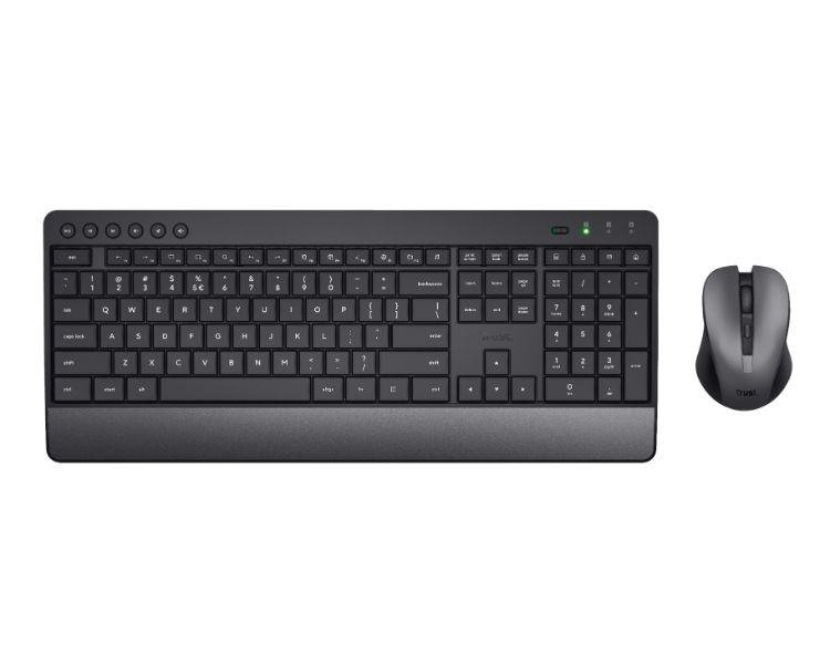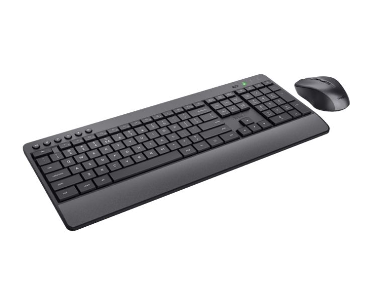 Un teclado inalámbrico con reposamuñecas integrado y pulsaciones suaves para trabajar de forma productiva y confortable y cuidar de sus manos.