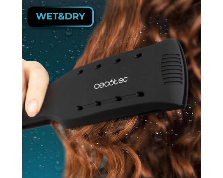 Diseñada para usar tanto en cabello húmedo como en seco. En húmedo, elimina el exceso de agua a través de los orificios de salida de vapor para secar y alisar al mismo tiempo. Y en seco, alisa el cabello incluso los más rebeldes sin resecar ni romperlo.