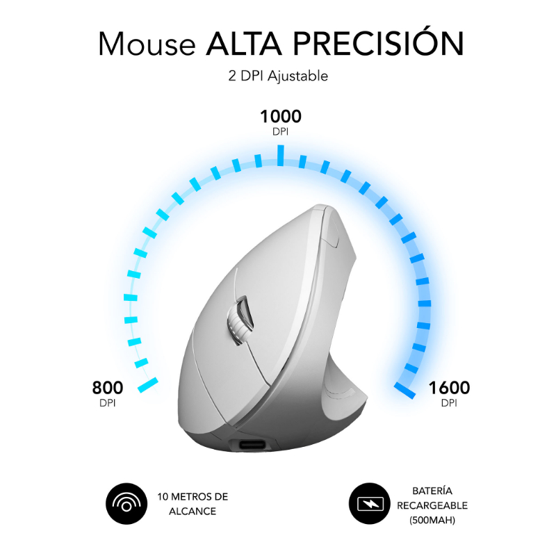 Ahorro de energía. El Ratón Glide Vertical de SUBBLIM destaca por su batería recargable de alta capacidad, que se carga de forma rápida y conveniente a través del puerto USB Tipo C