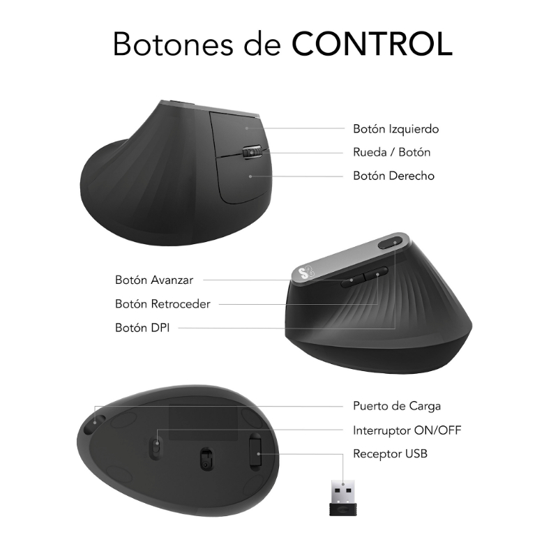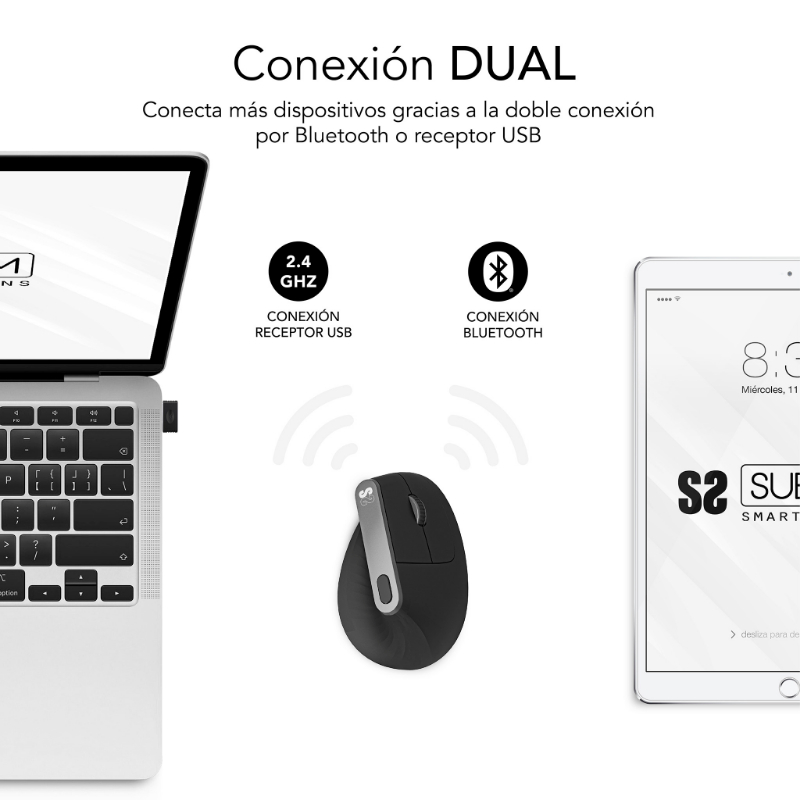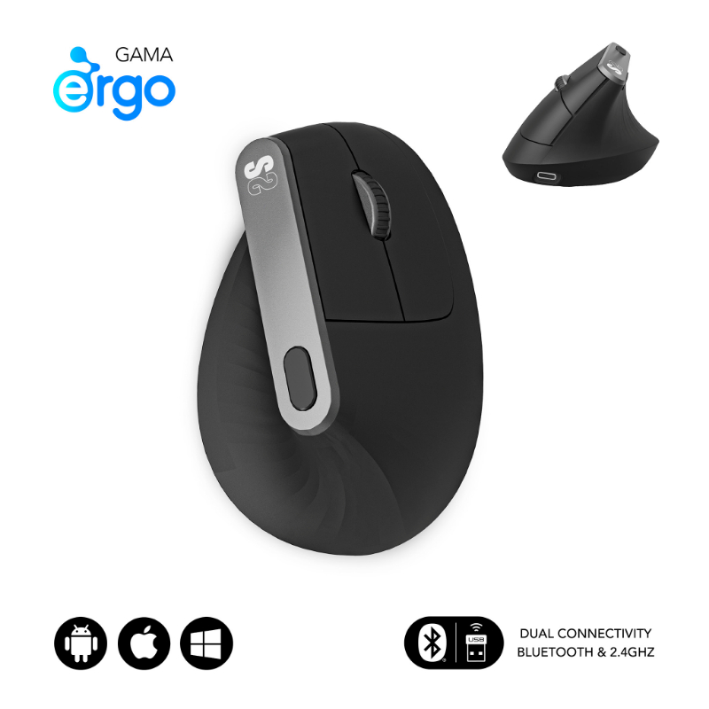 RATON OPTICO DUAL NATURE VERTICAL ERGO DUAL BATERIA NEGRO SUBBLIM