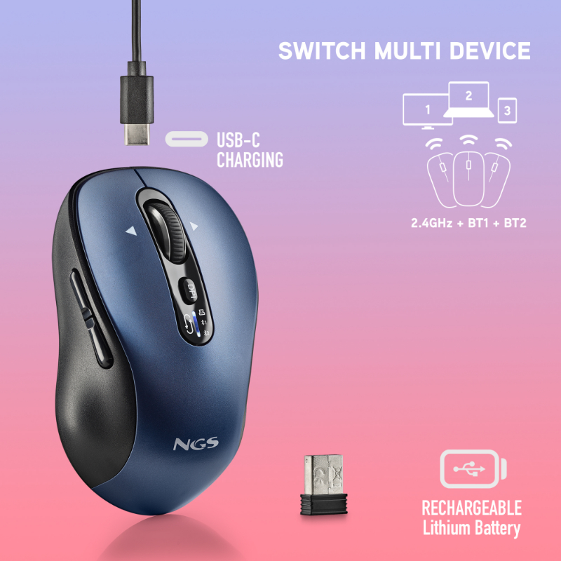 Ratón inalámbrico Multidispositivo: Conexión 2,4 GHz + Bluetooth 5.1 + Bluetooth 5.1.