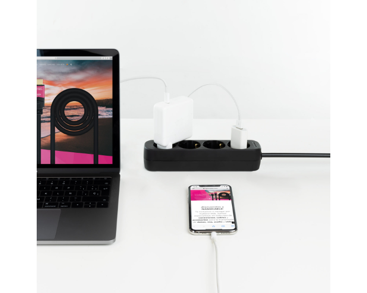 REGLETA PROTECTORA 4 TOMAS NEGRO NANOCABLE