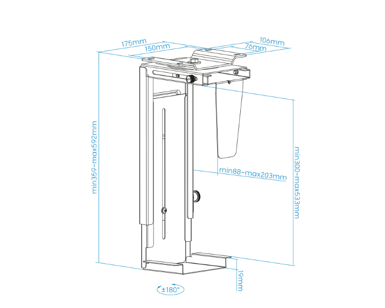 De 300 a 533mm de altura y 80-203mm de ancho/ Hasta 10kg/ Giro de 180º
