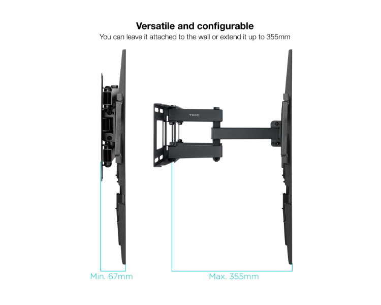 32-70"/ Máximo 40kg/ VESA Máximo 400x400/ Inclinación, giro y nivelación/ Distancia de pared de 67 a 355mm