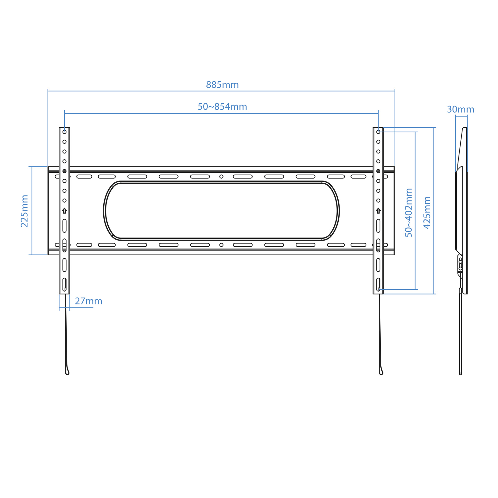 Colocación soporte: Pared Color Del Producto: Negro Peso Maximo: 80kg Pulgadas Desde: 43 Pulgadas Hasta: 90 Tipo Soporte: FIJO Vesa: 800x400