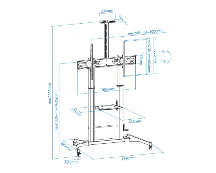 60" A 100"/BANDEJA PARA DVD/ VESA MAX. 1000x600/CARGA MAXIMA 100KGS/ REGULABLE EN ALTURA