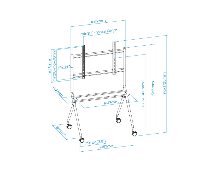 Colocación soporte: Suelo movil Color Del Producto: Negro Pulgadas Desde: 50 Pulgadas Hasta: 80 Tipo Soporte: SUELO Vesa: Si